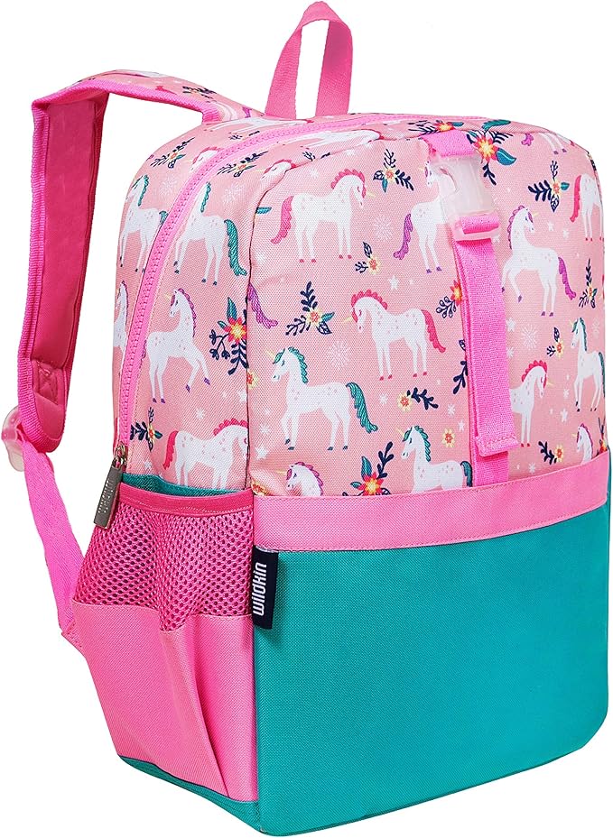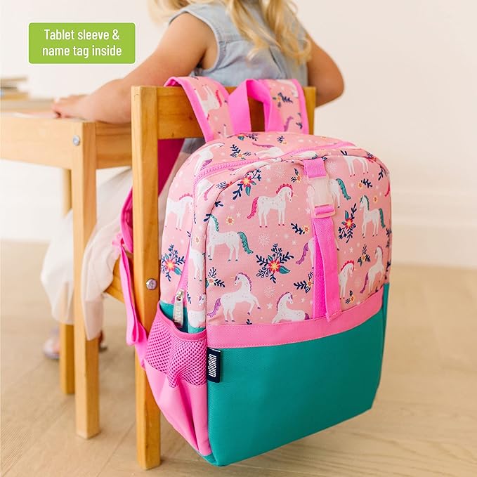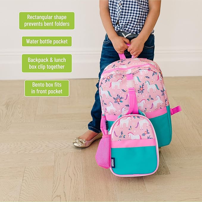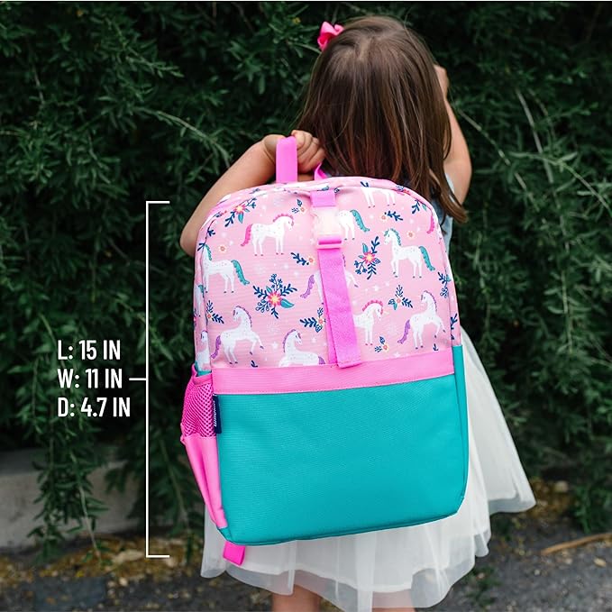 • Diseño apto para viajes: haz que viajar sea fácil con mochilas para niños. Las mochilas para niñas cuentan con bolsillos de malla de alta calidad que se ajustan a una botella de agua de 16 onzas y una correa frontal para fijar la lonchera con clip de Wildkin u otro equipo.