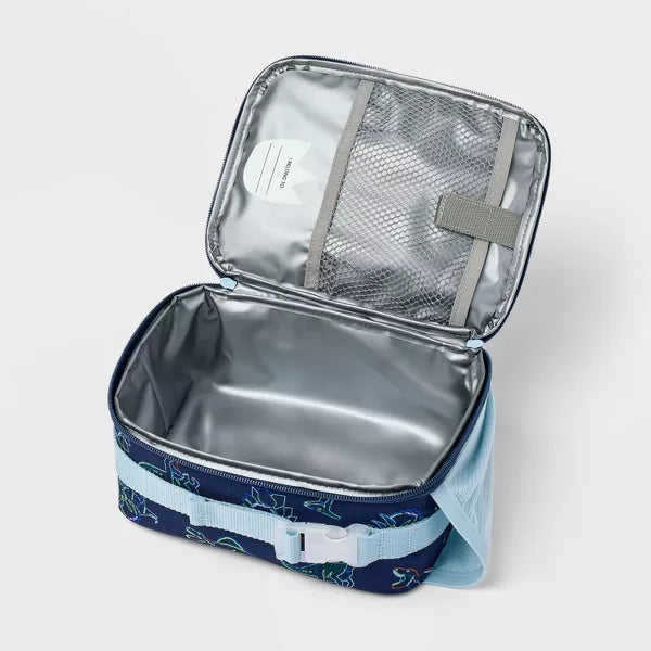Ya sea para picnics o para el almuerzo escolar, esta lonchera clásica de Cat & Jack™ es práctica y fácil para la hora de comer de tu hijo. Hecha 100 % de poliéster reciclado, esta lonchera cuenta con un espacioso compartimento principal con cremallera y un bolsillo interior de malla para pañuelos, cucharas y más. Cuenta con un bolsillo lateral y frontal, una correa ajustable para ampliar el espacio de almacenamiento y está adornada con hermosos diseños que le dan un toque súper divertido.