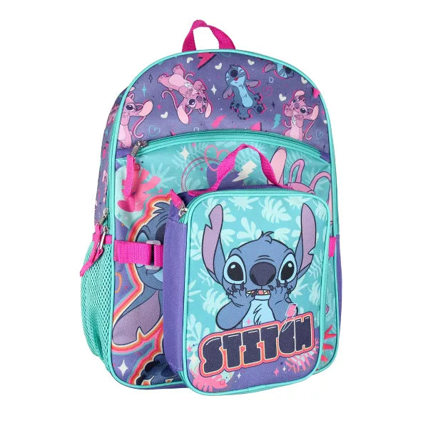 Lilo & Stitch Angel 5 Pc Set Backpack Lunch Box Key Chain Pencil Case ENTREGA INMEDIATA