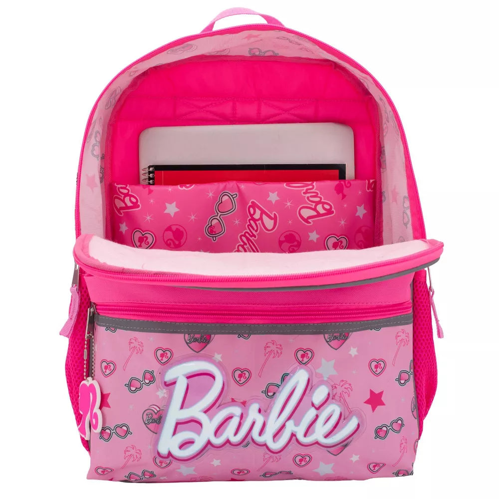 Dale un toque de brillo al día escolar de tu hija con la Mochila de Lentejuelas Barbie. Diseñada para las pequeñas fans de Barbie, esta vibrante mochila rosa luce una gran silueta de Barbie en forma de corazón sobre un panel de lentejuelas brillantes para un look divertido y llamativo. El espacioso compartimento principal incluye una funda acolchada estampada para guardar tabletas o libros de forma segura, y el bolsillo frontal con cremallera facilita el acceso a los artículos escolares y la merienda. Las correas de hombro acolchadas ajustables y los bolsillos laterales de malla garantizan comodidad durante todo el día. Ya sea para ir a la escuela, a la guardería o a jugar, esta mochila es la compañera perfecta para aventuras con estilo.